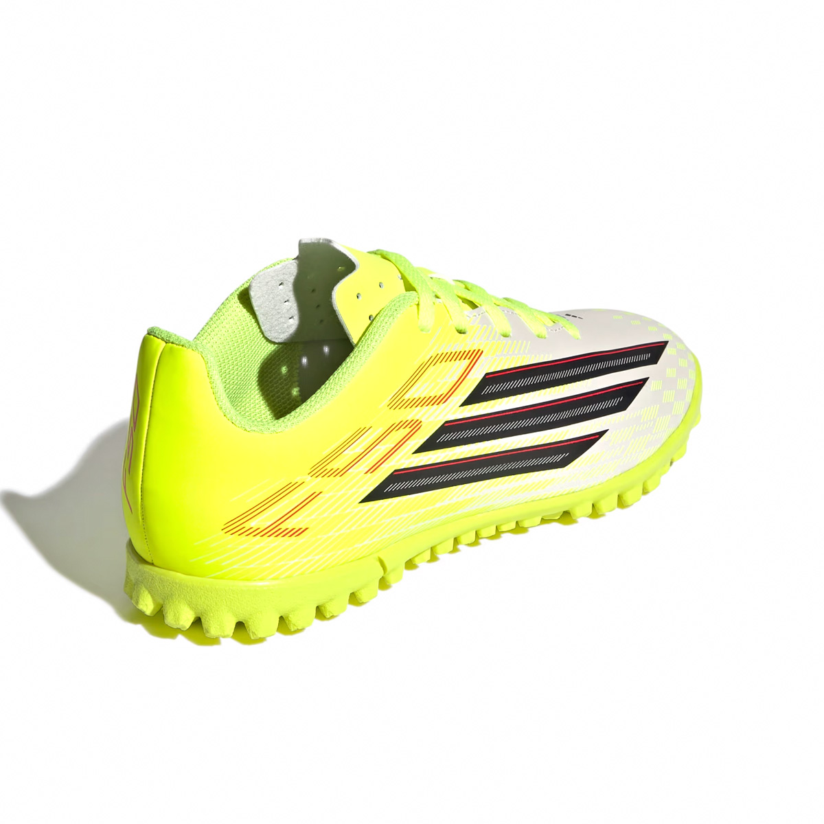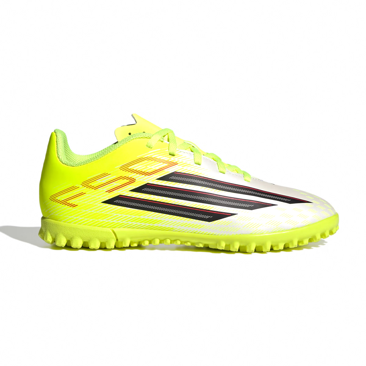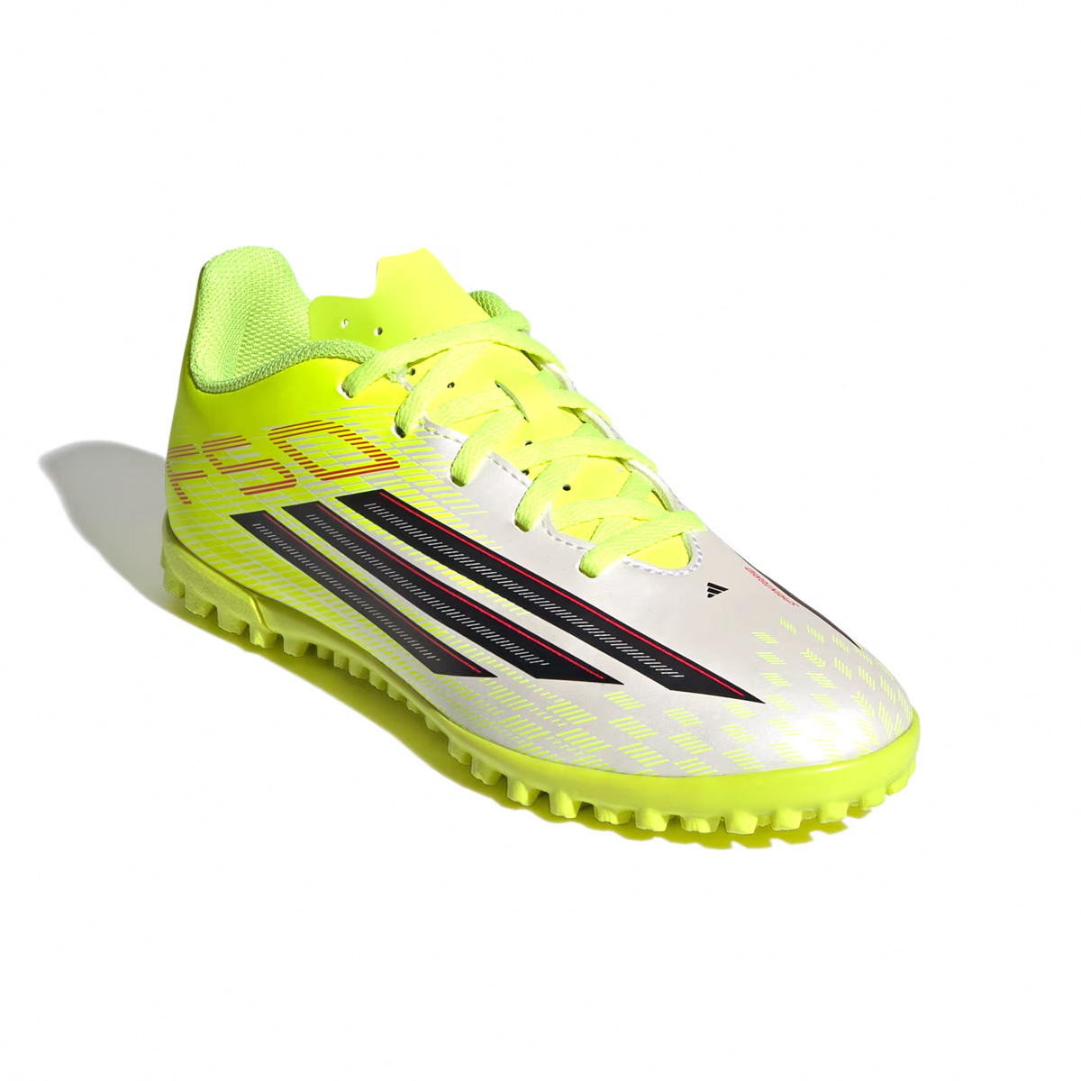 Las tenis de fútbol para césped artificial F50 Club para niños están diseñadas para jugadores jóvenes que buscan velocidad y precisión en el campo. Diseñadas con una parte superior sintética ligera, estas tenis combinan soporte y amortiguación, ofreciendo una sensación de comodidad. La lengüeta sintética flotante con perforaciones mejora la transpirabilidad, mientras que la suela texturizada está diseñada específicamente para campos de césped artificial, proporcionando tracción y estabilidad en superficies artificiales. Con un corte regular y cierre de cordones, estas tenis ofrecen un ajuste seguro y ajustable, permitiendo que los niños se concentren en su juego. El logotipo F50 y las icónicas 3 bandas añaden un toque de estilo adidas, convirtiendo estas tenis en una opción destacada para los jóvenes aficionados al fútbol.