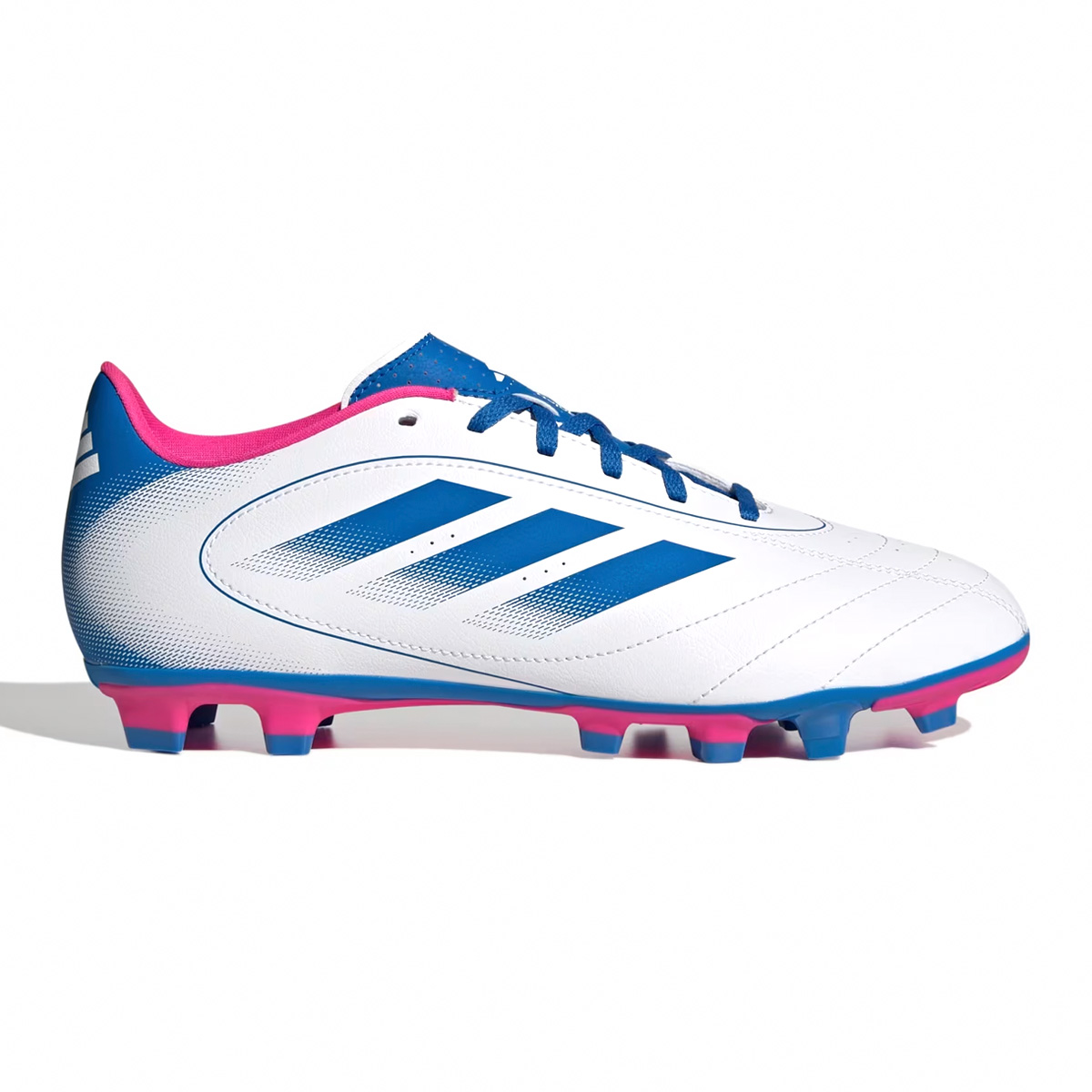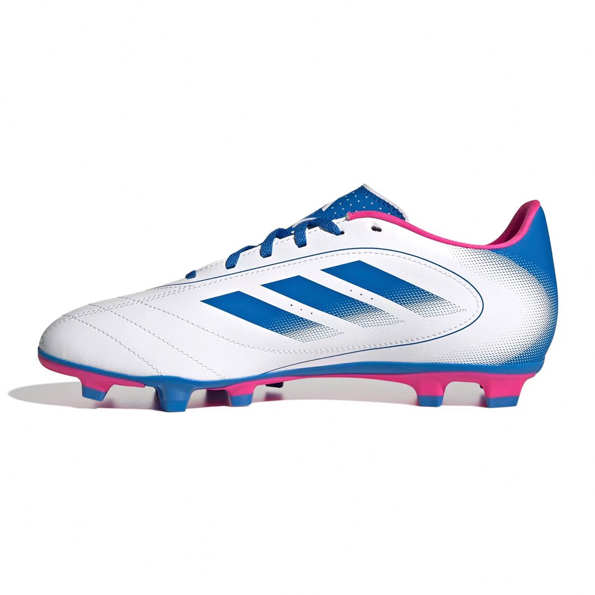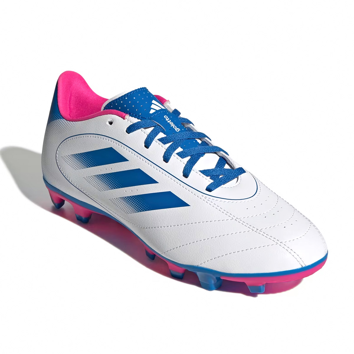 Ponte estos tacos de fútbol adidas Goletto IX y prepárate para brillar en la cancha. Su suave parte superior sintética cuenta con acolchado y perforaciones estratégicamente ubicadas para que te sientas cómodo en cada movimiento. Su versátil suela te permite moverte con rapidez tanto en terreno firme como en césped artificial.
